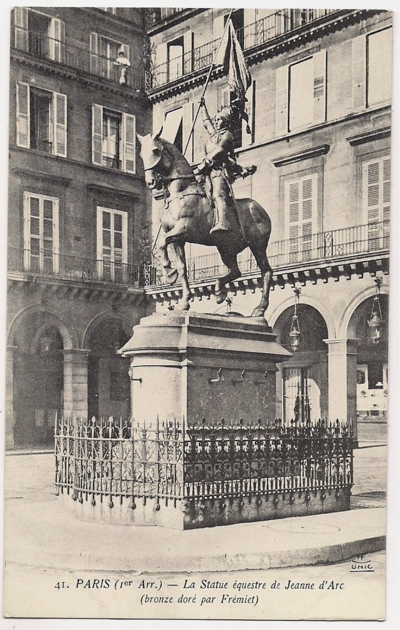 6Toute photographie peut donc devenir la relique efficace de ce qu’elle montre, et l’image active se présente volontiers comme une « image d’image », sculpture et photographie combinant ainsi fréquemment leurs forces. Photographier le monument de Frémiet n’entraîne nullement la déperdition de la force de Jeanne d’Arc. Tout au contraire, le cliché, version miniature de l’œuvre, permet à cette dernière de s’introduire dans le monde quotidien de l’autrice, pour y agir directement.
