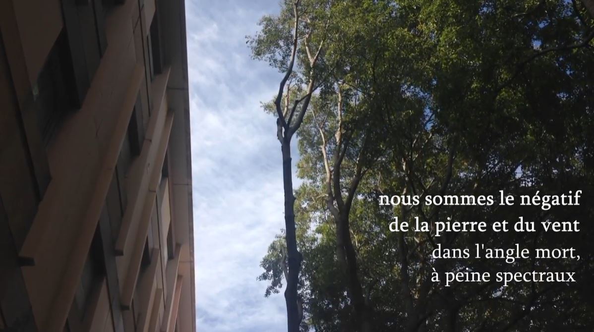 bien « l’absence entre/qui balbutie » (23’). L’entre-deux, « ni